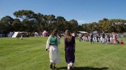Pictured: Two fair maidens making their way into the festival. Image credit: Erin Donaldson.