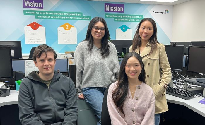 Volunteer Dylan Reed, Interns Bethany Sweet, Glanice Song Ling Tan and Staff Member Chloe Le, Marketing Coordinator - Products and Services • IX : Strategic Partnerships & Communications. Chloe along with Sam Lloyd Portfolio Marketing and Brand Experience Lead • IX : Strategic Partnerships & Communications are available for interview and to assist the team.