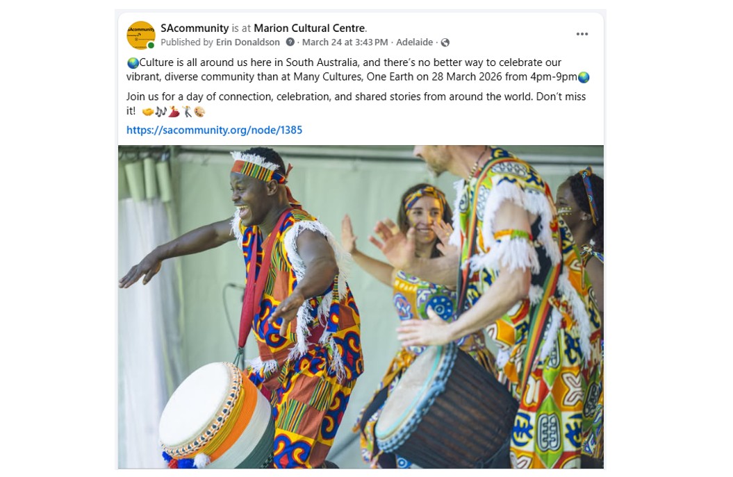 During Week 5, Erin worked towards publishing an article promoting the City of Marion’s Many Cultures, One Earth event. She liaised with the Media and Marketing team to obtain permission and gather relevant information, which she then used to develop an article for community members to read and use as a guide for the event.
