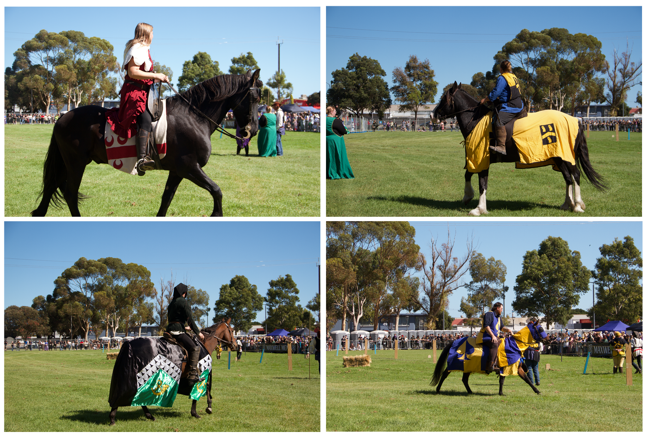 Next up were the jousting warm-ups. Unfortunately, no dramatic sword clashes here, just an impressive display of horsemanship, precision, and skill as riders guided their horses through tricks like collecting hoops, knocking blocks, and striking shields to earn points against the clock.