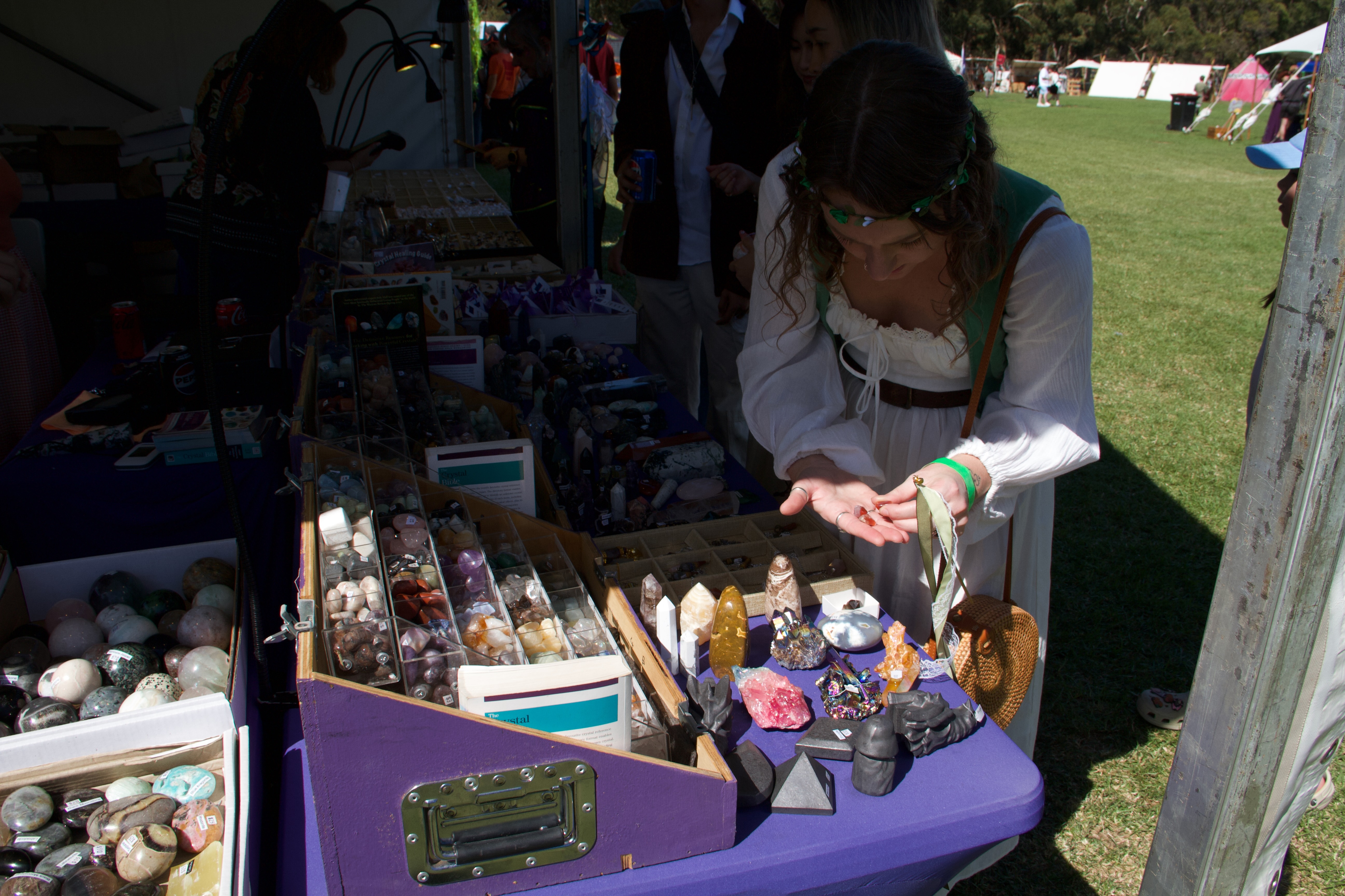 Checking out the rock collections at the market stalls. Image Credit: Erin Donaldson.